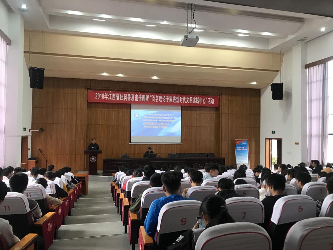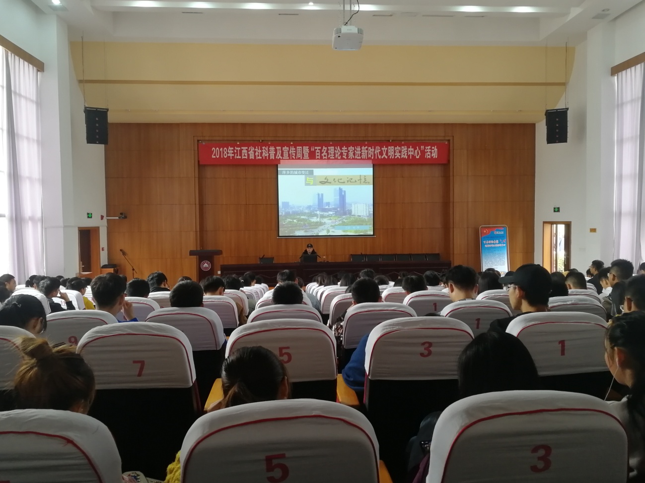 按照《中共江西省委宣传部 江西省社联关于举办2018 年江西省社科普及宣传周暨“百名理论专家进新时代文明实践中心”活动的通知》要求,我校于11月3日举行了2018年江西省社科普及宣传周暨“百名理论专家进新时代文明实践中心”活动的两场讲座。本次活动由萍乡学院新时代文明实践中心、科研处、宣传部共同承办。