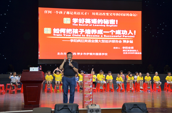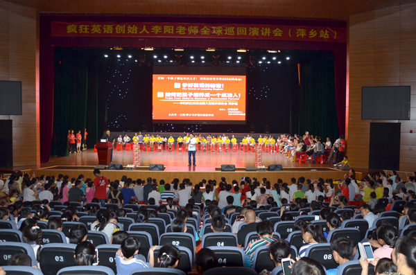 6月8日,“李阳疯狂英语”团队创始人李阳老师在我校音乐厅举行“李阳疯狂英语全球巡回讲会(萍乡站)”演讲,当晚,近千名家长与学生同李阳老师零距离接触,共同感受了疯狂英语的激情。