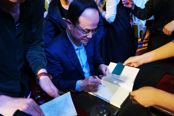 报告会结束后,我校师生手捧著作《千古悲摧帝王侯——海昏侯刘贺的前世今生》纷纷登上讲台,邀请作者签名,黎隆武在每本书的扉页一一签下自己的名字,大家还就报告会内容作了交流与探讨。