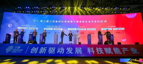 开幕式上,举行了校企科技合作签约仪式,23所学校、和56家企业签署了56个项目的合作协议,签约金额高达6.01亿元。同时,为南昌大学、江西师范大学等8个首批江西省高校科技成果转化和技术转移基地授牌。