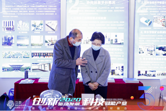 此次对接会我校以“为地方经济社会服务,向应用型大学转型”为主题,采用展板、视频、实物等方式展示2018年以来的科技成果,设立了高校科技成果展区和青年红色筑梦之旅展区共4个位。高校科技成果展区以科研概况、科技创新平台、科研创新团队和服务地方转型发展四个展板呈现,结合工业陶瓷、机械电子、海绵城市视频播放,展示共16个校(政)企合作成果相印证。青年红色筑梦之旅展区主要展示了近两年我校创新创业的概况、历程和成果。